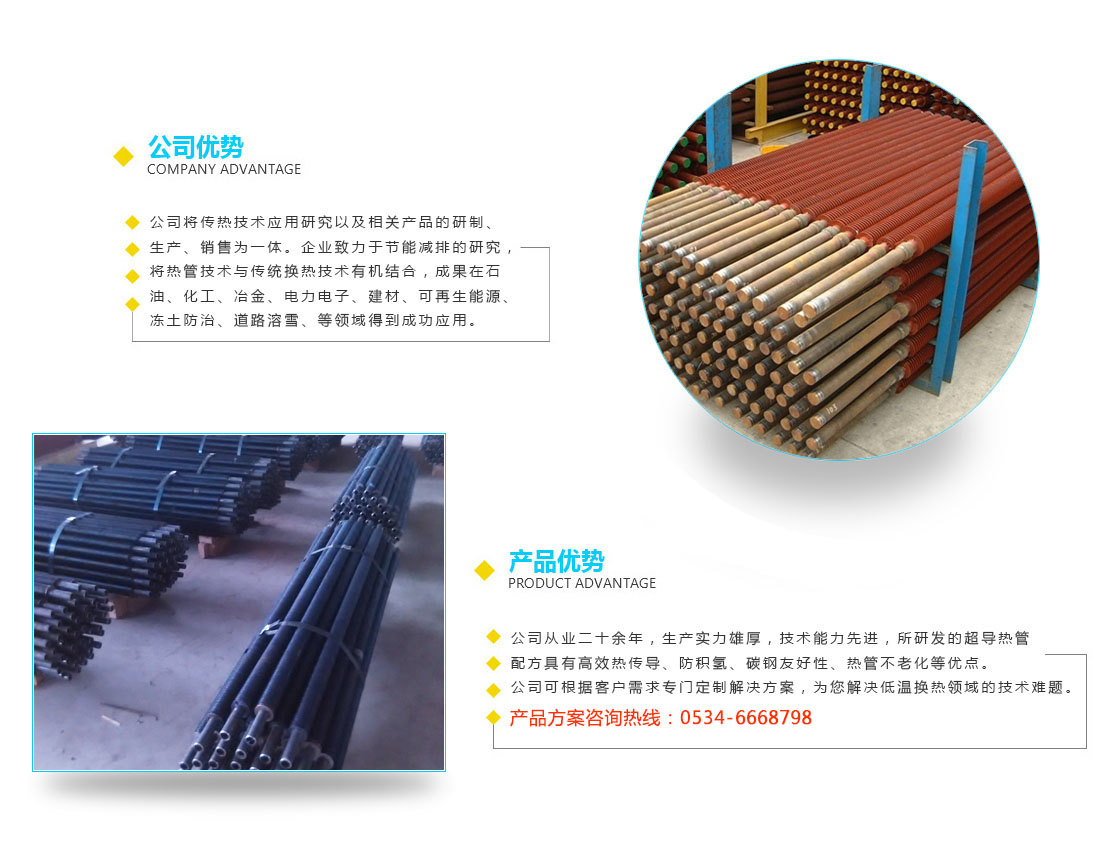 年的技術(shù)人員組建而成。公司研發(fā)的超導(dǎo)熱管配方具有高效熱傳導(dǎo)、防積氫、碳鋼友好性、熱管不老化等優(yōu)點。我公司可根據(jù) 客戶需求專門定制解決方案,為你解決低溫?fù)Q熱領(lǐng)域的技術(shù)難題。 公司擁有高頻焊接生產(chǎn)線、高標(biāo)準(zhǔn)自動清洗線、氬弧自動管焊接、全套金屬成型機(jī)、主要生產(chǎn)翅片管,翅片熱管,鋼鋁復(fù)合管,熱管式空氣預(yù)熱器,石化配件,公司設(shè)有獨(dú)立的中心實驗室,配備完善的熱性能總 和檢測設(shè)備 與設(shè)施,為配套產(chǎn)品進(jìn)行設(shè)計和研發(fā)提供了堅實保障。 公司以科學(xué)的生產(chǎn)工藝、嚴(yán)格的質(zhì)量管理、先進(jìn)的服務(wù)理念、合理的產(chǎn)品價格,在國內(nèi)外廣大用戶中贏得了良好的聲譽(yù),深受國內(nèi)外廣大客戶的信賴。 ![]() |